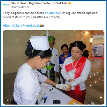 WHO South-East Asia Region has taken several measures to address this growing health challenge in alignment with the strategies of the WHO Global Diabetes Compact. The Seventy-sixth session of the WHO Regional Committee for South-East Asia endorsed the SEAHEARTS (WHO HEARTS package adaptation to SE Asia Region), to accelerate CVD risk reduction and to place 100 million people with diabetes and hypertension on protocol-based management by 2025. These interventions will enhance access to diabetes care and reinforce NCD services at the primary health care level.