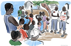 A WHO team provides information about how to about mpox to residents.